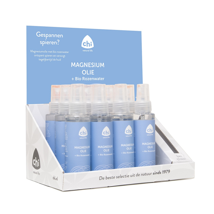 Deze magnesiumolie spray van Chi Natural Life combineert de werking van magnesiumchloride met de zachtheid van rozenhydrolaat. De formule voelt licht olieachtig aan, maar trekt snel in en laat de huid comfortabel en verzorgd achter.